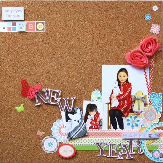3枚目のレイアウトのベースは本物のコルクシート(12インチ・裏面は糊付き)です♪