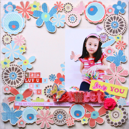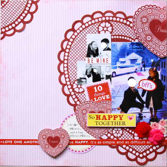 Making Memoriesの新作 Je t'Adore Collection 、Basic Greyの新作Hopscotch、K&Companyの新作ほかアイテムより制作していただいております。