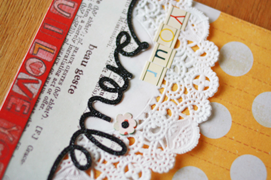 ペーパーに貼ってから形どおりにカットしたステッカーをタイトルにしました。 レースペーパーは少し飾っただけで、とても華やかになるアイテムで使いやすかったです。