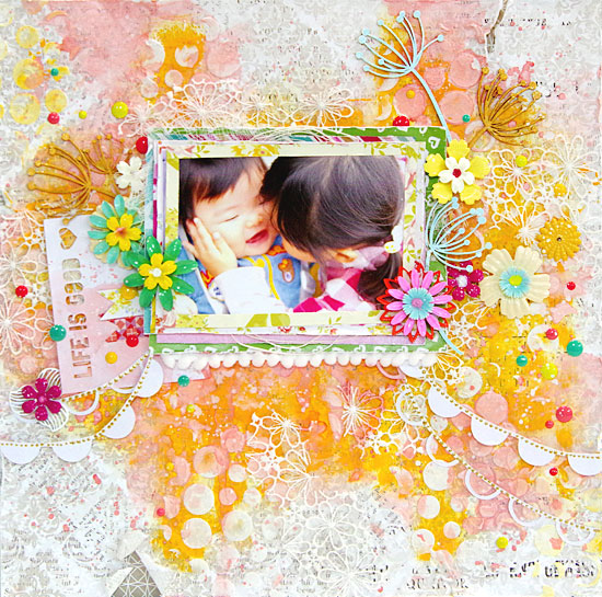 モデリングペーストでの立体感付け・SHIMMERSの着色アイテム”Creameez”やアクリル絵の具での着色・Blue Fern Studiosのエンボスパウダー・リキッドパールやエナメルアクセント・・・・等々様々な色や質感を加えるアイテムを使用します。基本的なアイテムの使用方法で制作していますので着色系初心者の方にもお薦めの講習です。