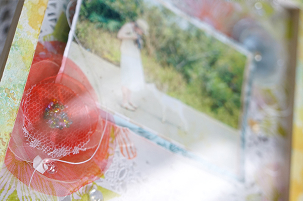 こちらの作品は透明台紙にレイアウトをするだけでなく、立体額のように写真やエンベリッシュメントの上にも透明板を置きレイアウトを全てフレーム内におさめ保護しています。