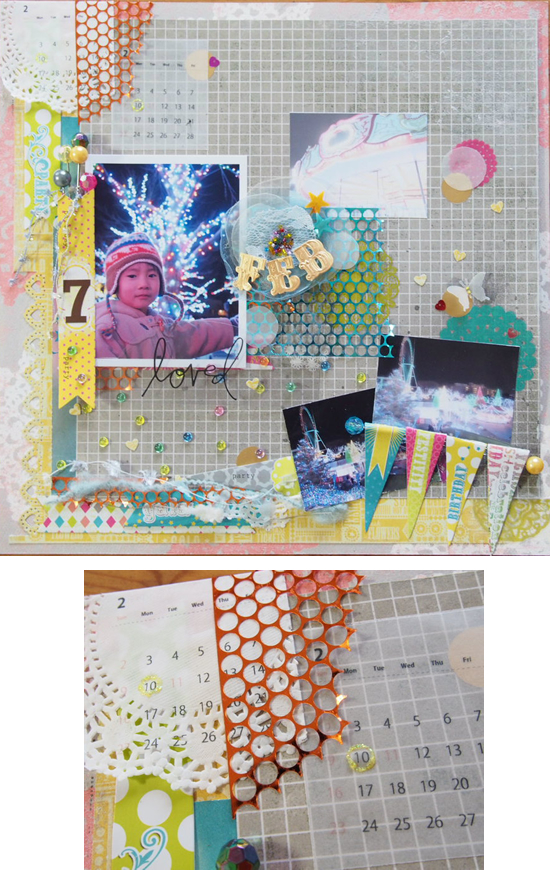 先日、長男の7歳の誕生日記念で夜の遊園地に行きました。 カレンダーはレースペーパーとヴェラムに印刷してい ます。