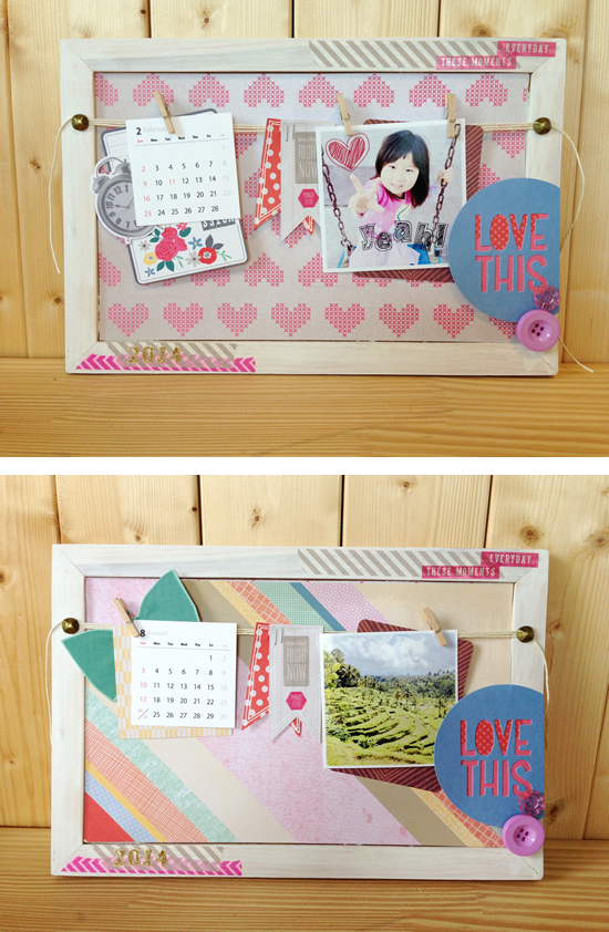 写真とカレンダーはウッドピンで留めてあるだけなので、気軽に取り替えられます。
