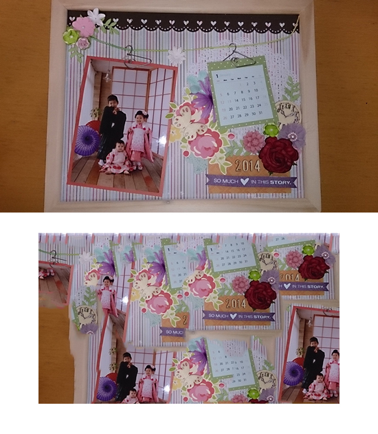 写真とカレンダーは毎月変えていこうと思っているので、取り換えのできるクリップにしました。