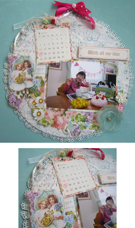 カレンダー部分には娘の誕生日にしるしをつけてお花でプレゼントの様に飾りました。