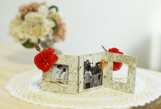 閉じて飾っても、もちろん開いて飾っても、そして片方だけ閉じたり・・・アンティーク雑貨のような1冊ができました。