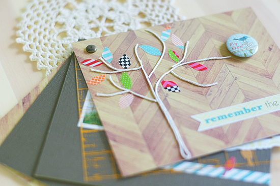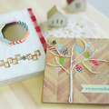 中のフォトアルバムは一つ穴をブラッズで留めたスライド式にしてみました。表紙にはまず小窓から覗く小鳥を。木の枝にとまっているように紐を貼り付け木にみたててみました。葉っぱはマスキングテープを。マスキングテープ、最近はたくさんの柄が出ているけれど、いろいろな使い方ができて楽しいですよね。 中のフォトアルバムは箱に入れたとき位置が固定していないと小窓から小鳥がきちんと見えないので、コーナーを作って箱の中で位置が固定するようにしてみました。 みなさんも自分らしい「箱」、是非完成させてみて下さいね。