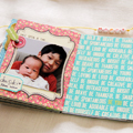 4年前の、娘が生まれて兄となった小さかった息子の写真で作ったミニアルバムです。 まだまだ小さかった彼がちょっと成長したかな?という思いを小さなアルバムに込めました。 元々ミニカードがたくさん入ったPPだったので、これをそのまま活かしてどうにかして簡単な ミニアルバムにできないかな?と思い、はじめは2枚ずつくっつけたまま1ページにして… 横長の形で、写真を半分コメントを半分…という形式を考えました。