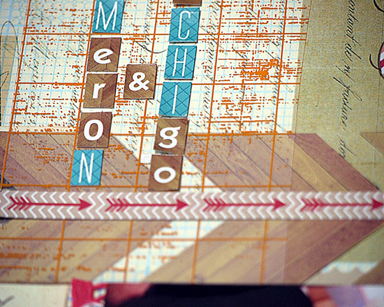 BasicGreyのコラージュされた模様のペーパーを活かしたレイアウトです。このまま写真を置いてもいいようなデザイン性のあるペーパーだったので、ペーパーを重ねすぎないようにしました。