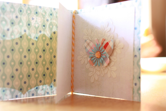 4×8インチのペーパーと3.75×7.75のペーパーを2枚重ねて、Twineでまとめてしまうだけでお手軽なカードが出来ます。