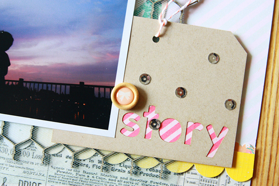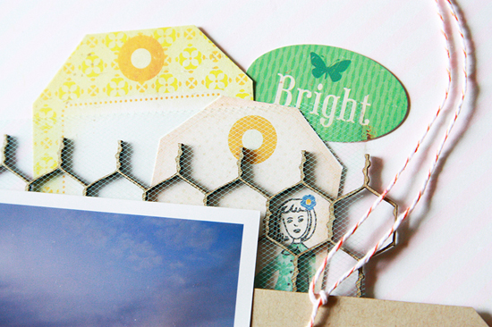 CratePaperのタグはカットアウトして数枚重ね、ちょうどチップボードから女の子がチラッと覗ける位置におきました。
