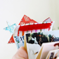 [ミニミニブック「Merry X'mas」] クリスマスの写真でミニミニブックを作りました。サイズはL判の1/4です。 じゃばらのミニブックの表紙は、お家にみたてました。 表紙と裏表紙をとめるために、マジックテープを使用しています。 写真の面を飾ってもいいし、コンパクトにたたんだ状態での表紙(お家の面)だけでも飾れると思います。 星のピンの透明部分にはグロッシーアクセンツをぬってから、グリッターをふりかけています。