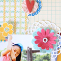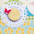 October Afternoonのペーパーがカラフルだったので、写真もカラフルな色の入ったものを選びました。 レースペーパーは大きくもなく小さくもなく、そしてペラペラではなくほどよい厚みがあります。 アクセントにもできるし、ジャーナルにもできるし、切ったり着色したりと色んな使い方ができそうです。 Hamblyのクリアステッカーは無地のペーパーに貼り付けたものを切り取ってから、 お花とハートのチップボードはアクリル絵の具で着色してから使っています。 レースペーパー同様、白ベースのお花も自由に好みの色に着色できるので便利ですね。 そして、Casket*オリジナルペーパーは今回も他のペーパーにすんなりとけこんでくれて、とてもあわせやすかったです。 全体的に、カラフルなのですが色味はやさしくて淡いので、刺繍糸やアクリル絵の具を使用してる箇所は意識して濃い目の色を使用しました。