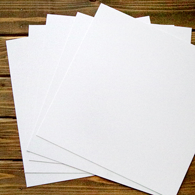 厚さ0.7mm程度の両面白の厚紙。サイズ12インチ。アシッドフリーなので直接写真を貼っても。通常の事務パンチなどでも穴が開けられる厚みですので、初心者の方でも簡単にカット・穴開けが出来ます。ミニブックのページ台紙にお勧めです。