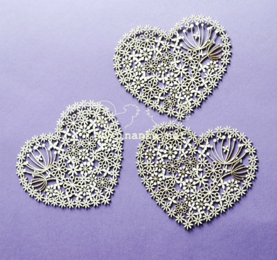 [ Wycinanka ]  / koronkowe serca, 3 szt / チップボード /