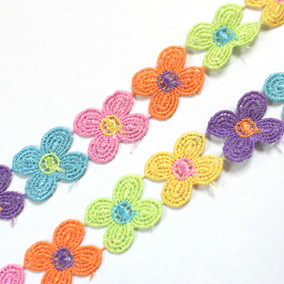 フラワー1個約1インチ。数量「1」で0.5ヤード=約45pとなります。0.5ヤードずつのプレカット販売となりますので2つ以上ご注文頂いた場合も0.5ヤード×本数となりますので了承くださいませ。