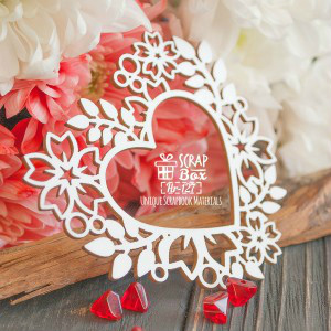 Frame Heart in flowers。厚さ約2mmのチップボードです。(Wycinankaやscrapiniec(厚さ約1.2mm)と同じく柔らかめの紙質ですが_、こちらのメーカーのチップボードは約2mmの厚みがあります)79 x 71 mm。
