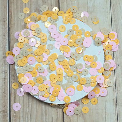 サイズ約6?8mmのスパンコールをミックスしたパック。5g入り(スパンコールの大小がございますが400?500枚程度が入っています。)
