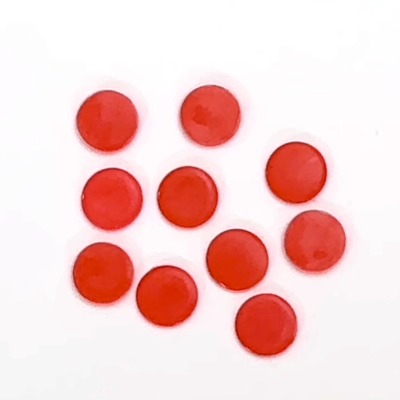 10個入り(数量1で10個入りパック1となります)。ラインストーンピックツールの穴のある側の先端をこのグルーに垂直に挿し、ピックツールの先端にグルーを付着させて使用します。(使用後は針や細い目打ちのようなものでグルーを取り除いてください)(赤と青は色が違うのみです)直径約24mm
