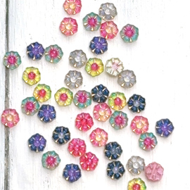 大きさ約8mm。約4g入り。パッケージのサイズは8×13cmです。パックに含まれるアクリルアクセントの色はランダムとなります。樹脂製。
