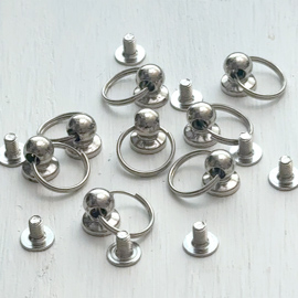ネジ&リング金具で1組・8組セット(ネジ側の色は同系パーツ各カラー全てシルバー。取り付け画像の例はシルバーです。固定できる最大厚みは2mmの厚紙にギリギリ固定出来ました。)。リングのサイズ直径約11mm(リングの部分のパーツが二重になったタイプ)。高さ約8mm・ベースの円サイズ約8mm。スマホケースなどのストラップを取り付けるためのリング金具となりますが様々なアイデアでご使用下さい。