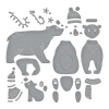20個のパーツ用ダイ(薄)。 ・ 完成した歩くクマ:3.15 x 2.10インチ/ 8.00 x 5.30 cm・ 完成した座っているクマ:1.95 x 2.80インチ/ 4.90 x 7.10 cm・ 完成した子クマ:1.05 x 1.25インチ/ 2.60 x 3.20 cm