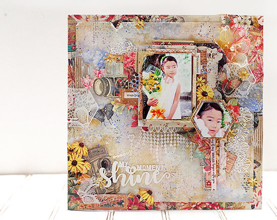 Vintage Odesseyのペーパーは日本人の写真にもとても合わせやすく、こちらの作品もスタジオ写真だけでなくスナップやアップの写真などあまり写真を限定せず飾って頂けるレイアウトとなっています。