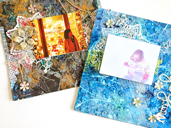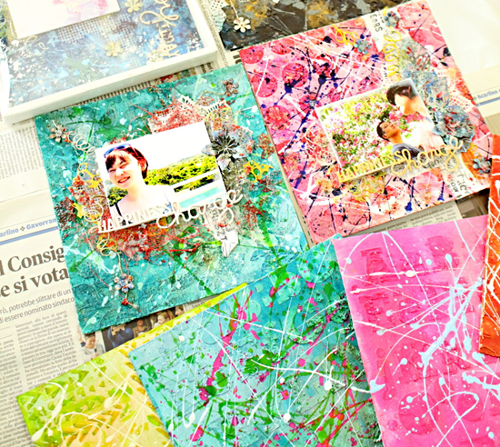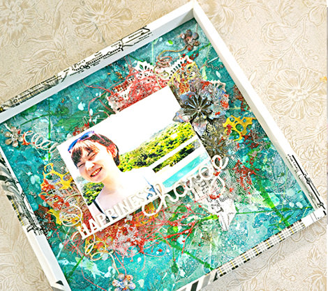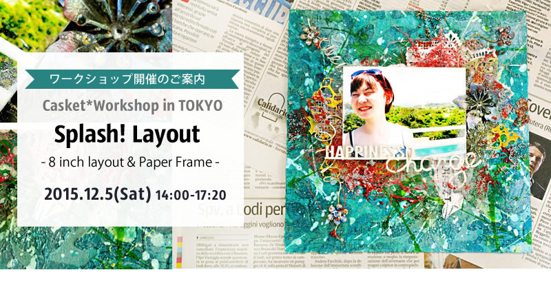 しぶき飛び散る”Splash!”なレイアウトをmixed mediaなアイテムをたっぷり使用して制作します。